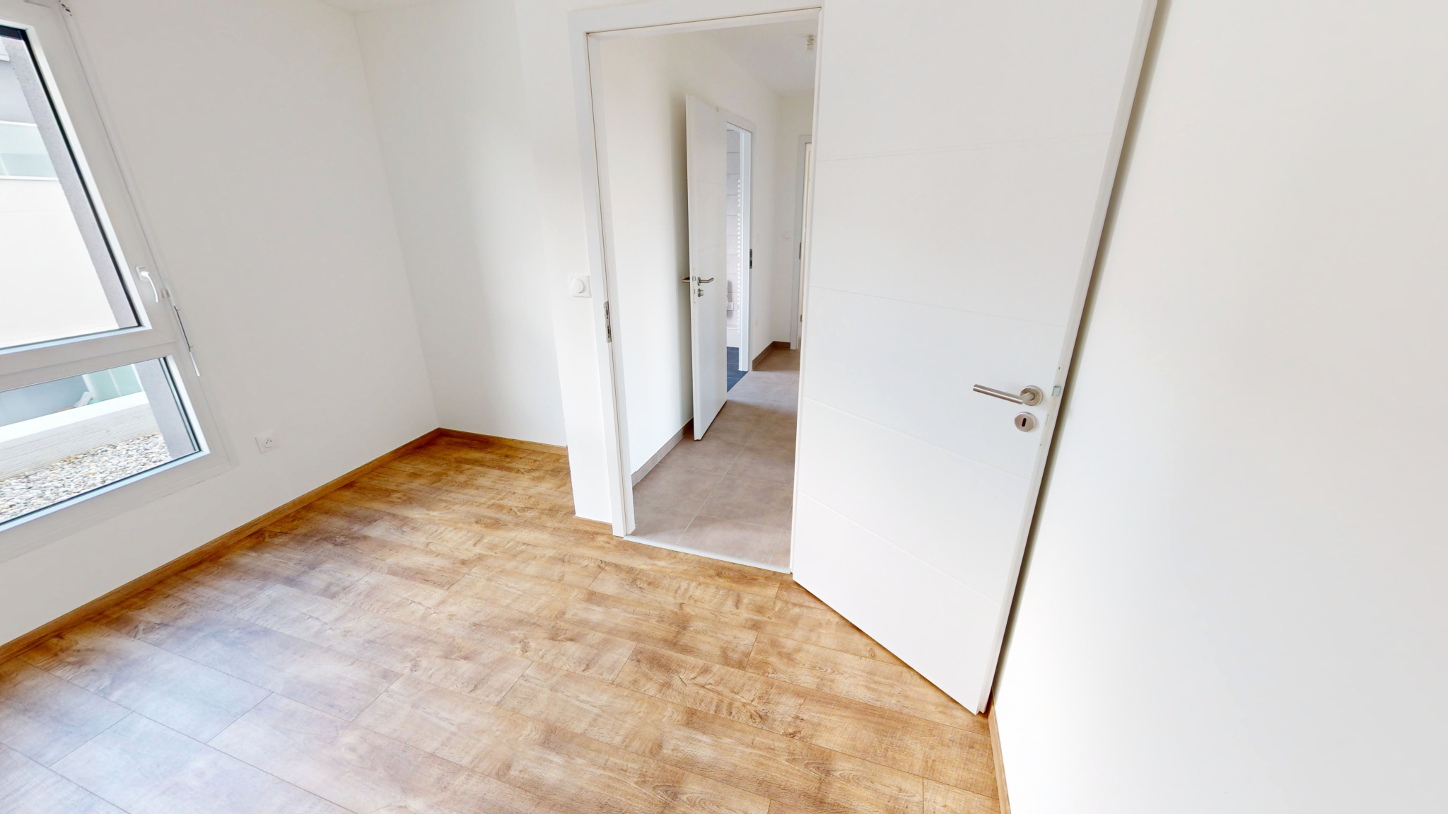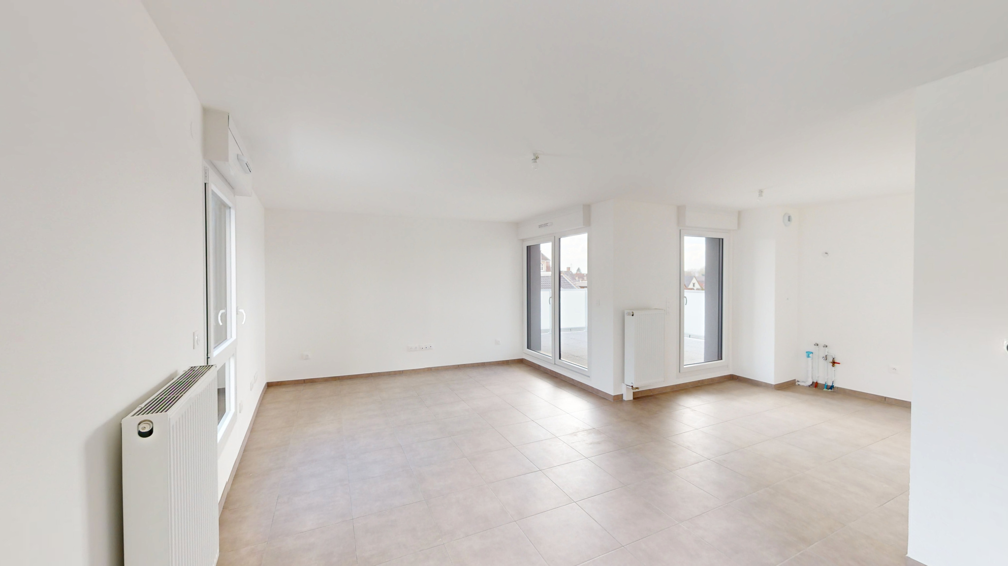 Au dernier étage avec ascenseur d’un immeuble neuf, ce logement sans vis-à-vis ni voisin direct offre une vue dégagée sur les toits et les jardins environnants.